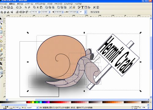 この絵は円などの図形を変形させて描いているので、ヤドカリのように各関節ごとに分けられるものを描くのは比較的簡単なんです。