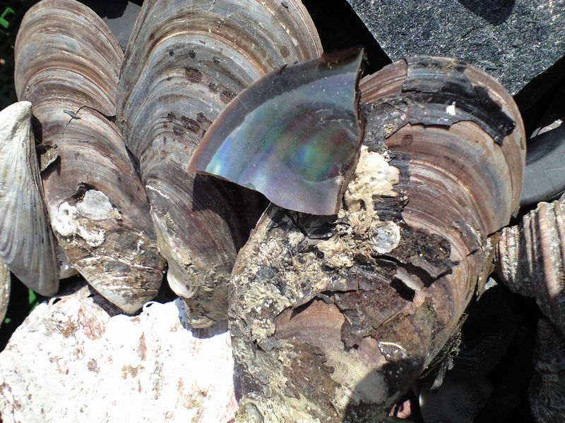 廃船置場に大量の貝殻が転がってました。