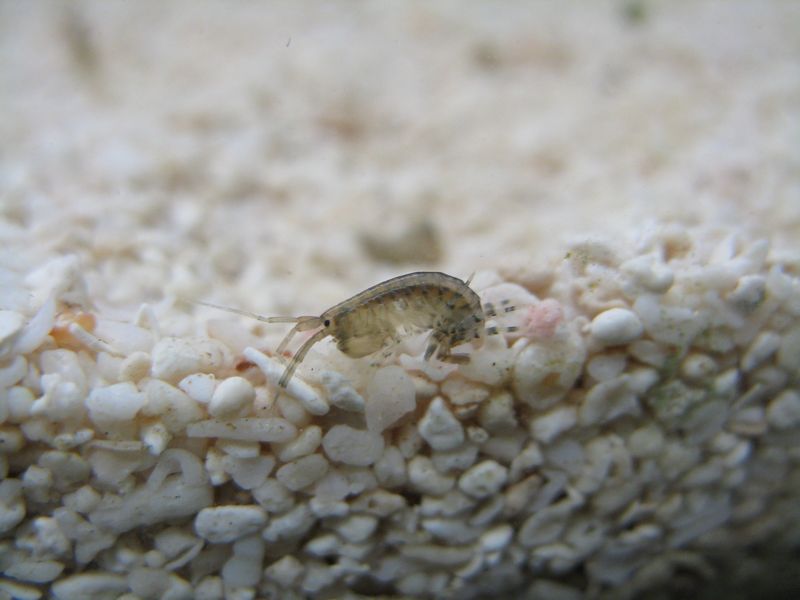 海藻についていた、微小生物はエビたちもたべていたので、入れて3日後には1匹もいなくなってました。