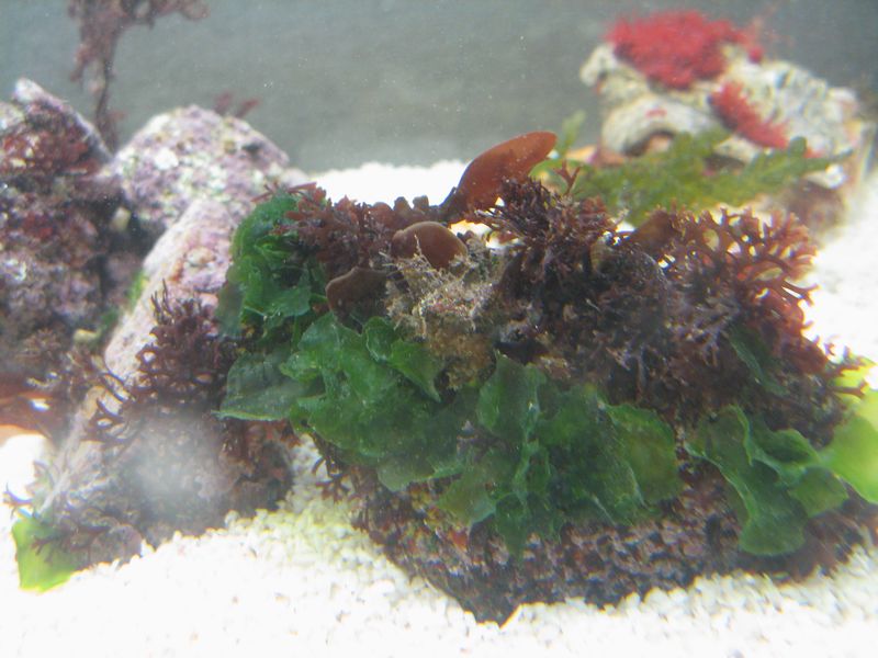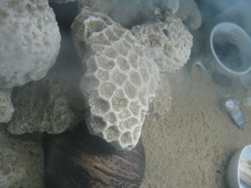 前の個体に比べて小さいせいなのか、単独でいるせいなのか、下よりも上に注意が向くようで底にある餌より水面や海藻に引っかかった餌を食べようとすることが多いです。