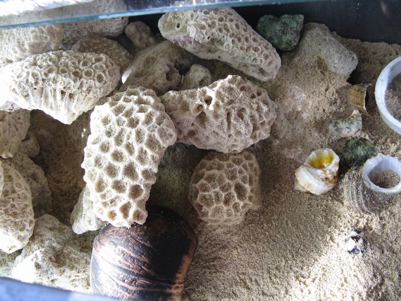 ヤドカリも2匹死んでまして、生きててもヤド脱いでるのがいたりで・・・。