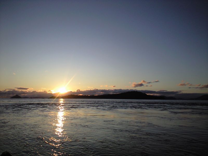 月明かりがまだ明るい。