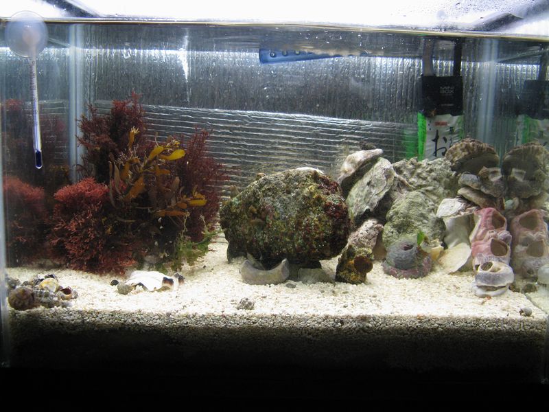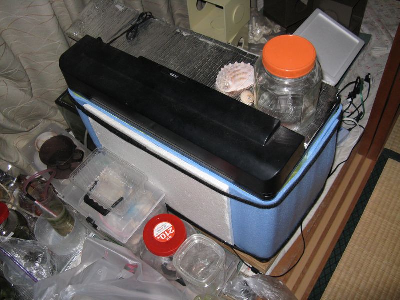 起きて、風呂入って、再度寝ようとしたら、水音がしたので、魚が飛び出したのかと水槽を確認していってたら・・・海水水槽の生物の大半が死んでました。