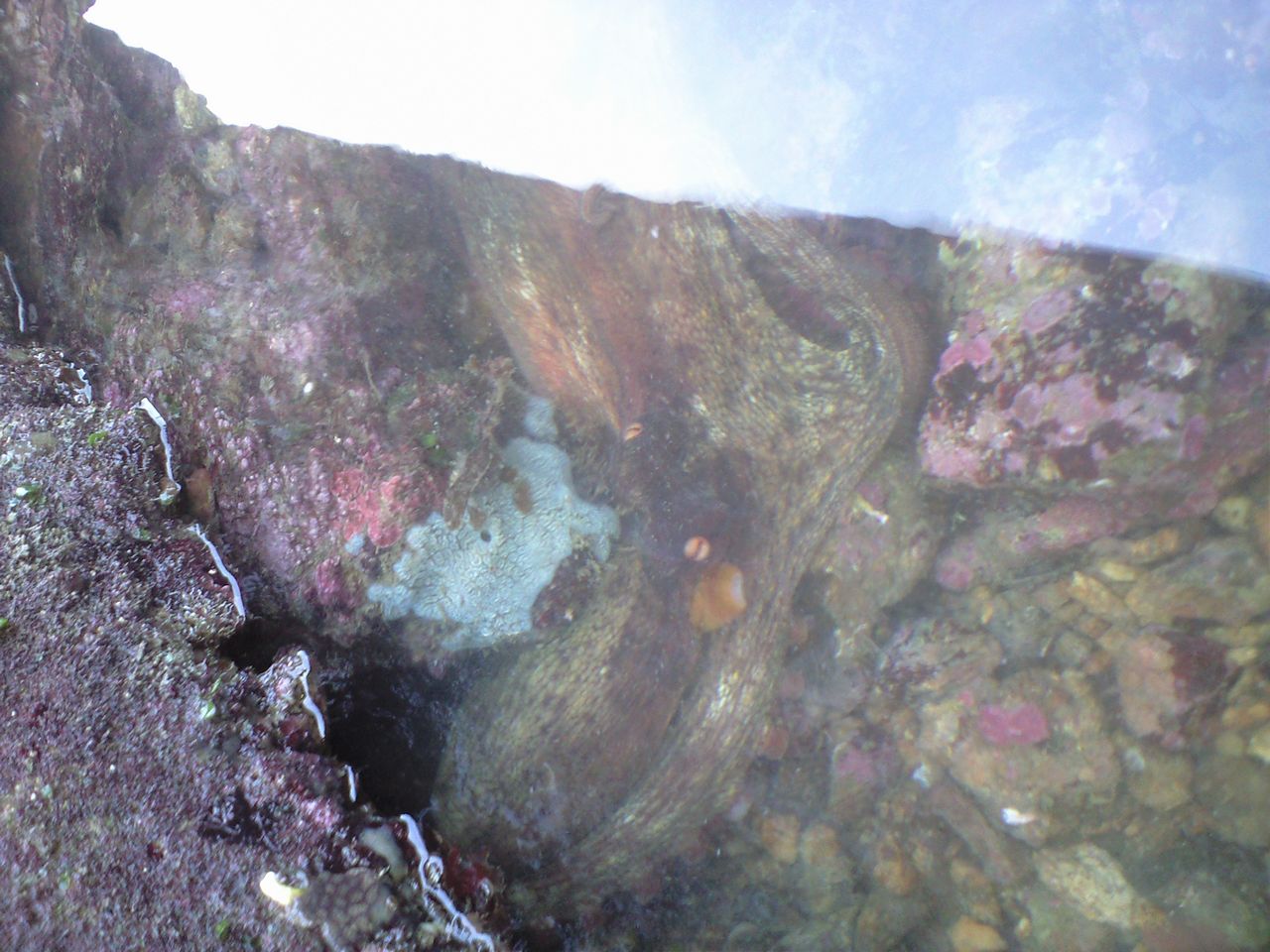(上の写真は潮だまりが水没し始める直前、最後に蛸の姿を見たときのものです。)