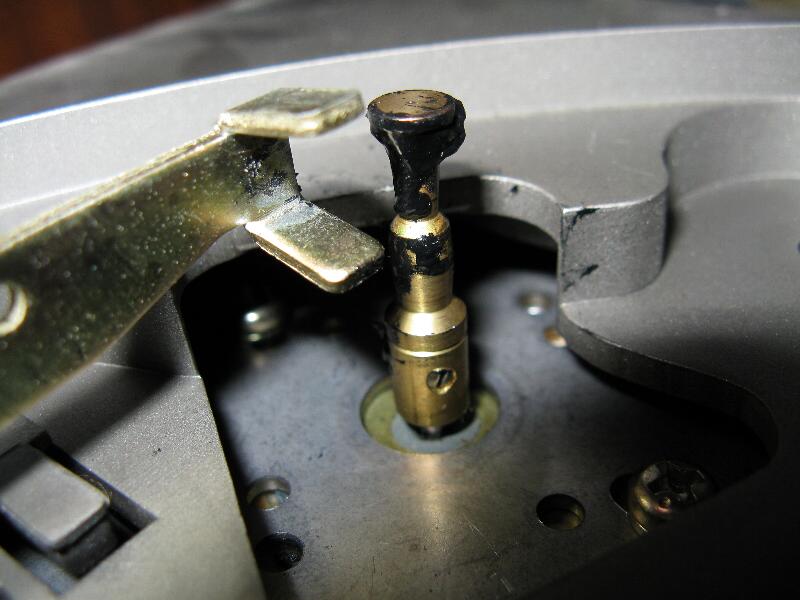 モーターの軸にこびりついている黒いモノは前のベルトの成れの果て。コレでもかなり取り除きましたが、完全除去できてません。