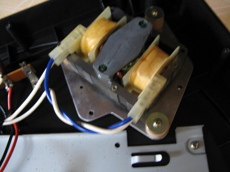 とりあえず、できる範囲での分解を試みたところ、ターンテーブルのベルトが切れてました。(正確には溶けてタール状になってモーターの軸に絡んでいたんですが・・・。)