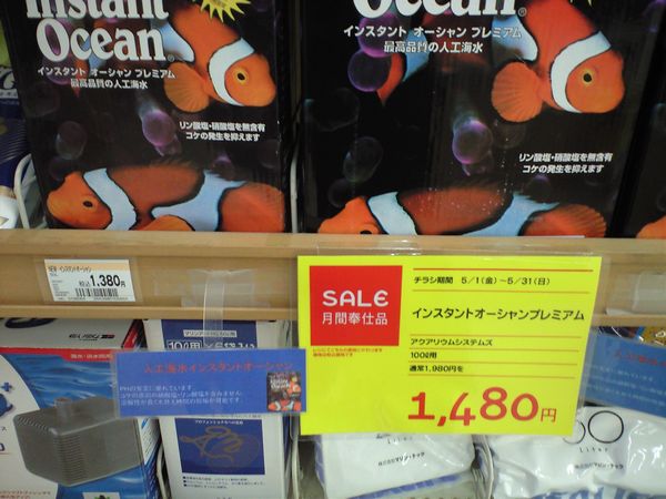 人工海水は瓶飼育は大した量いらないから10L用でも買おうかと思ったんですが、インスタントオーシャン100L用が特売でした。