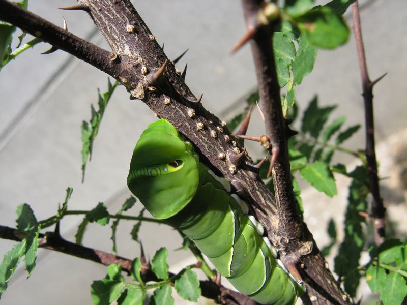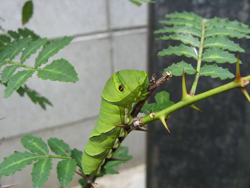 去年はつきすぎて山椒の葉を食べつくして全滅しましたが、今年は2匹だけです。