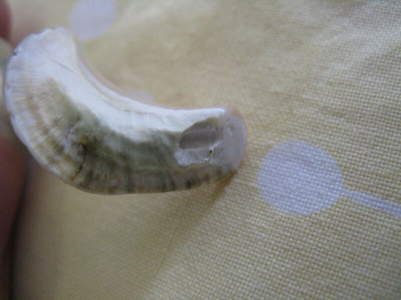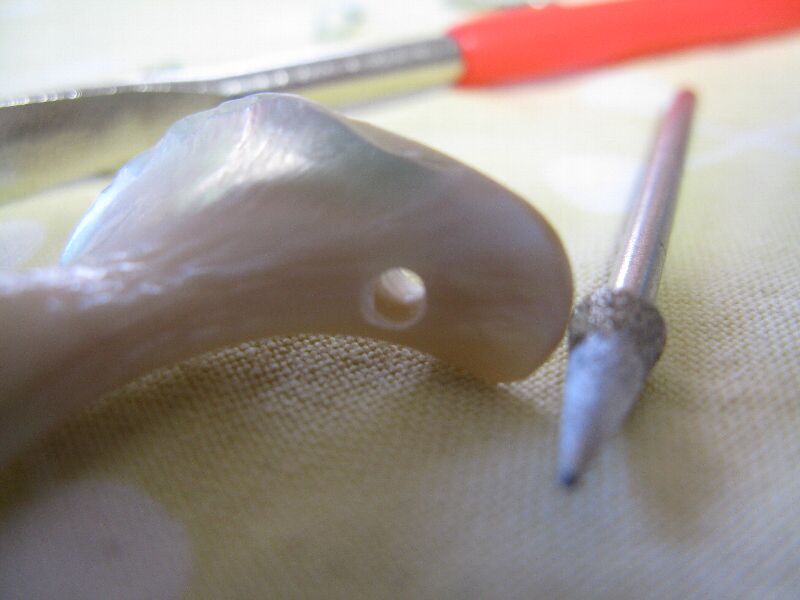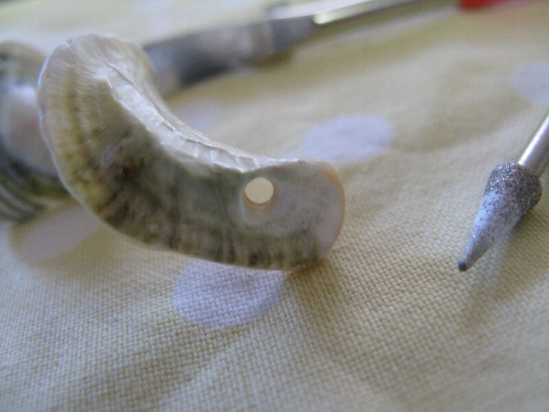 ドリルの負荷に負けて貝が砕けました。