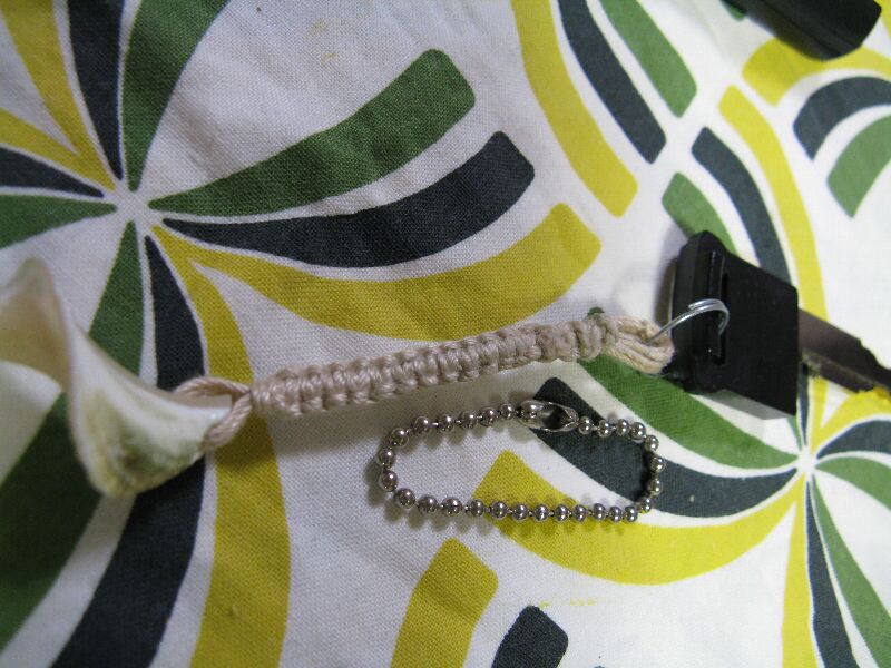 前と同じ金具を使うとまた割れそうな気がしたので、ダイソーのレース糸で平編みしました。