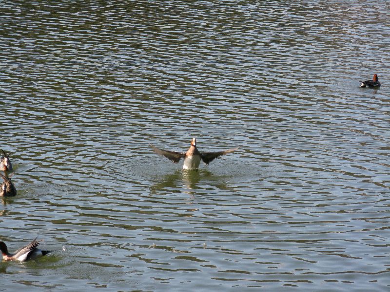 撮ってるときは鴨かと思ったんですが、帰って調べたらアオクビアヒルらしいです。