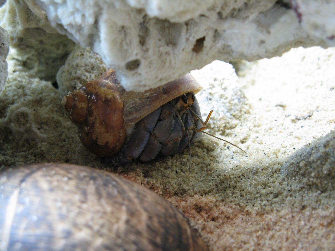 ヤドカリはせっかく磯から連れてきたので、歓迎の証?として新しい貝殻を提供しました。