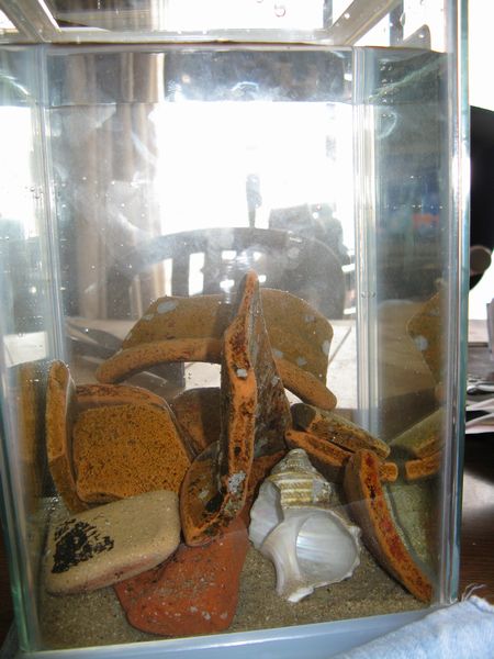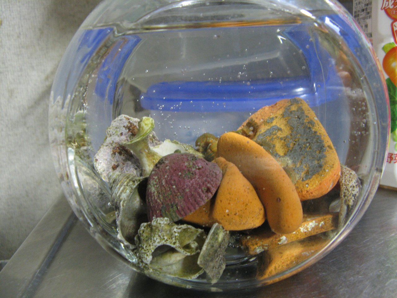 石は磯にもどせばいいとして、ダイソー猫瓶はあと1つしかないし、普通の水槽だと味気ないような・・・。