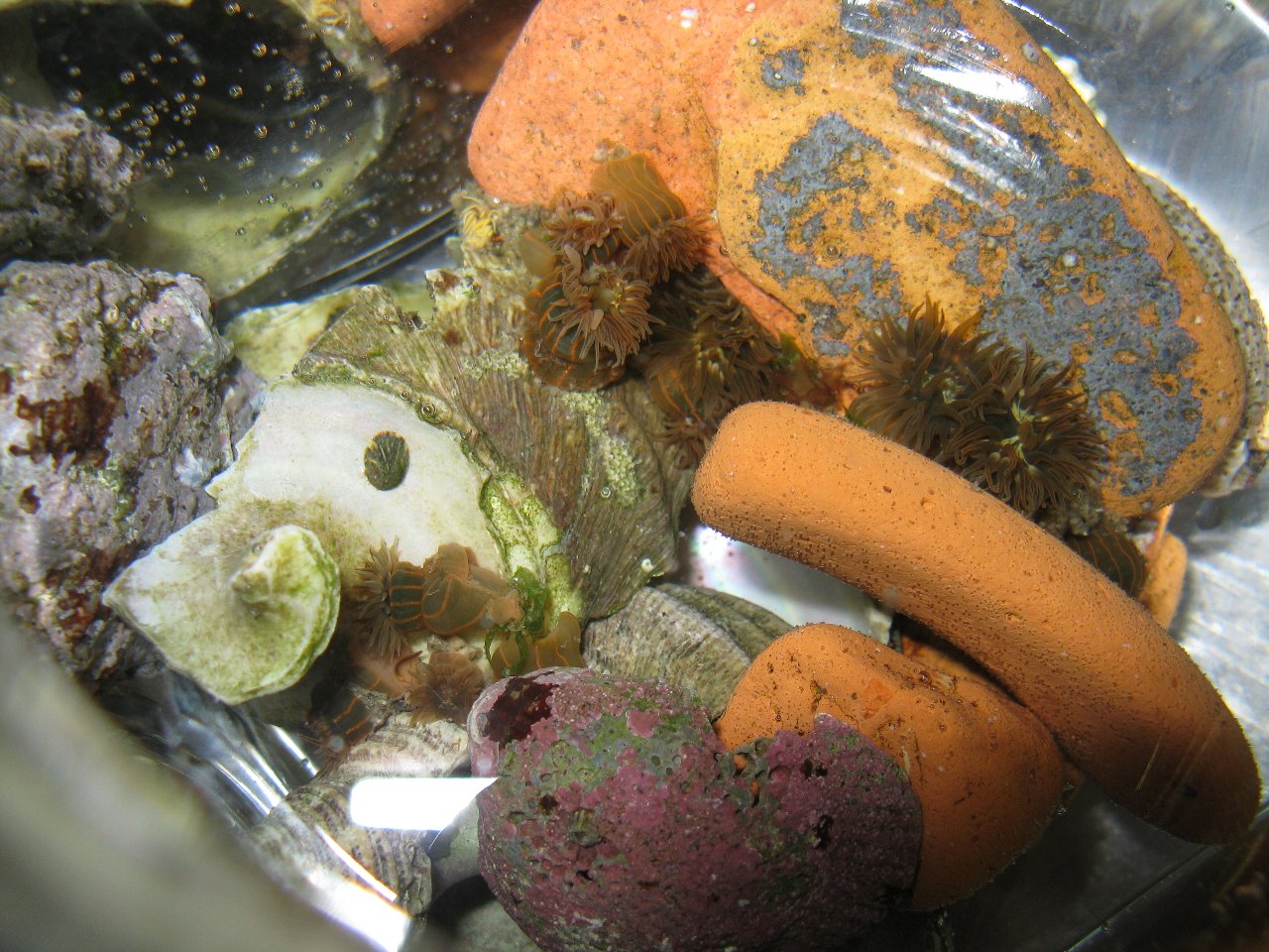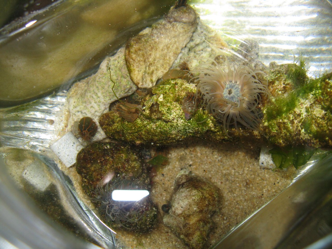 泡に乗って下のほうがら剥がれたイソギンチャクがでてくるし・・・。