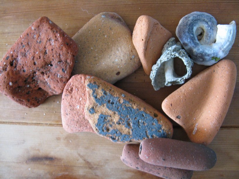 角が丸くなったレンガや、サザエの割れたのです。