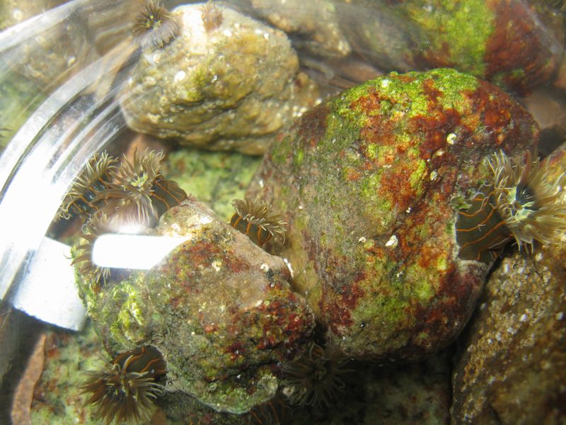 昨日とってきたタテジマイソギンチャクを入れていたビンですが、昼に書いたように水質悪化でヤドカリが全滅したので水を捨てたまま水をいれないで干潮状態にしてました。