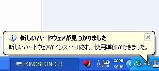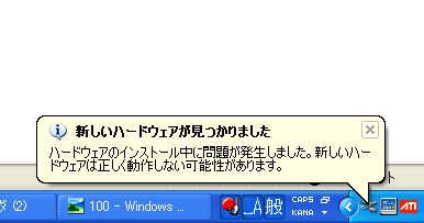 ただ、『新しいハードウェアガ見つかりました』の表示が毎回でます。