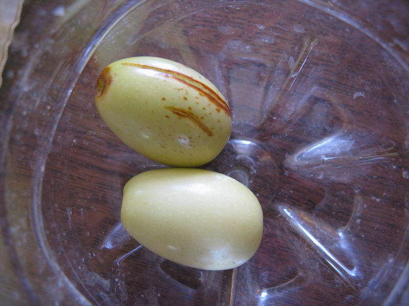 (熟した状態が美味そうに見えないのと、ウチの棗の実は熟すまでに確実に虫がついていて食べられないんです。)