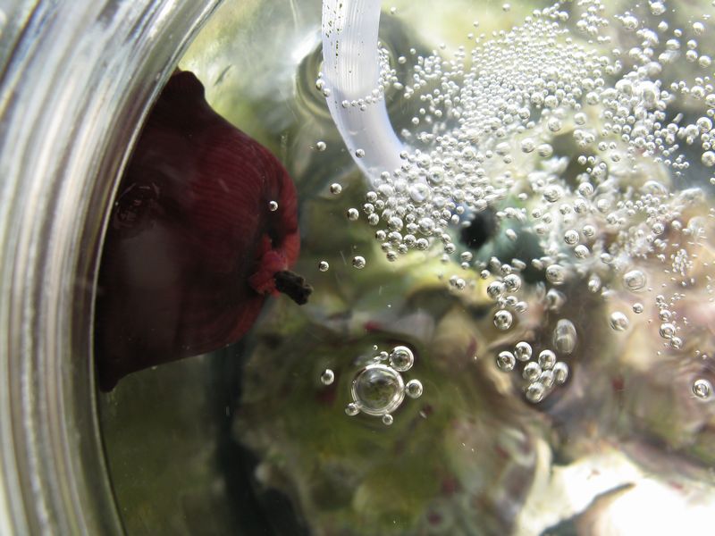 要するに水槽の中がムレているということなので、蓋開けて空気入れ替えました。