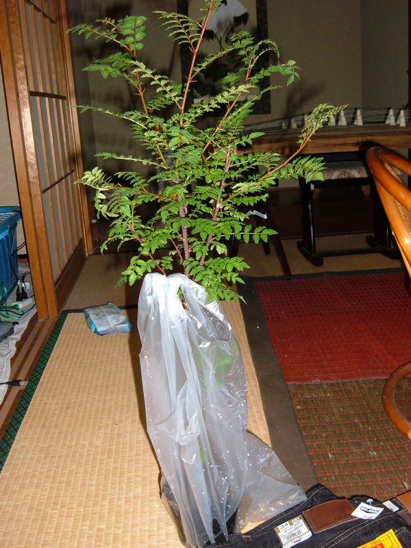 山椒の苗は800円の値札がついていましたが、「雨のなか来てくれたから」と600円にしてくれました。