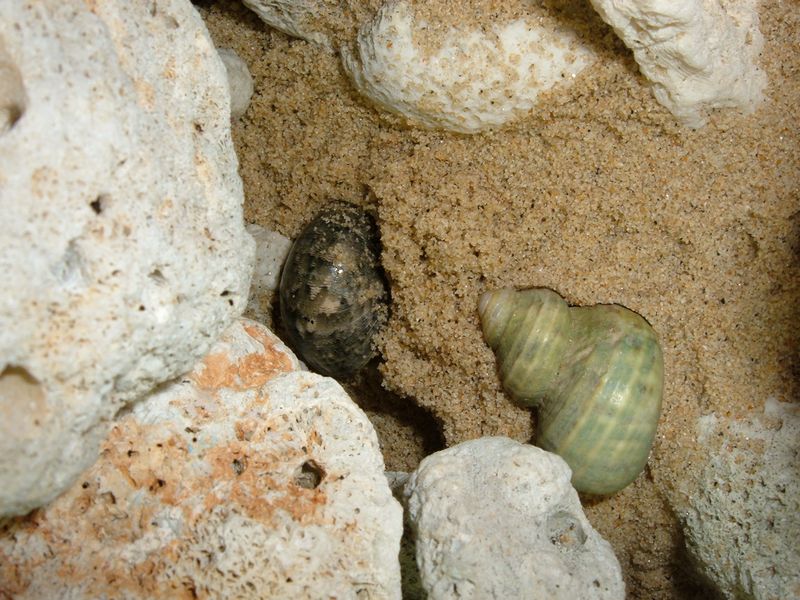 さて、ヤドカリですが、旧・新水槽ともに全然動きがないです。