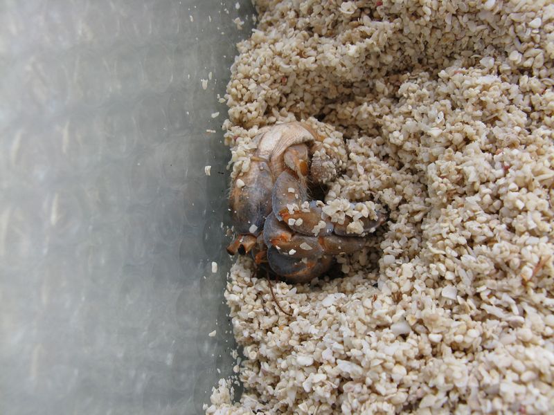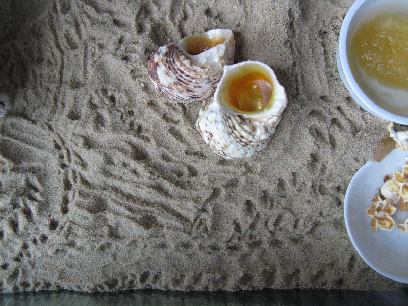 砂上脱皮はするし、砂に潜るたびに貝殻脱ぐし、自然界なら生きていけないぞ、8番。