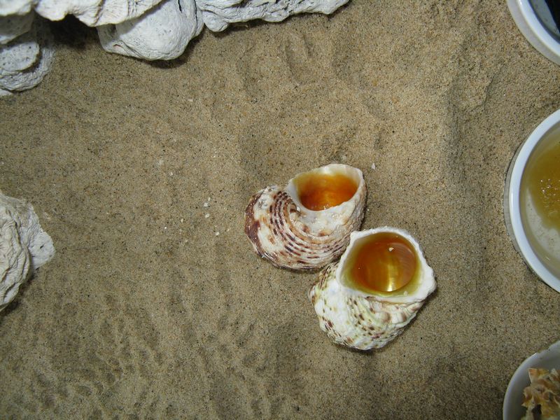 もともと着ていた貝殻を掘り出しておいてみましたが、