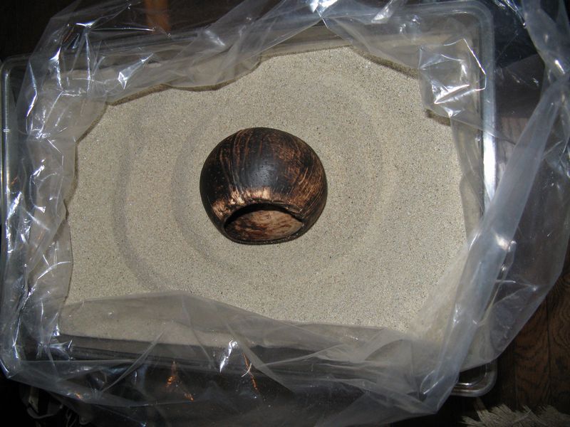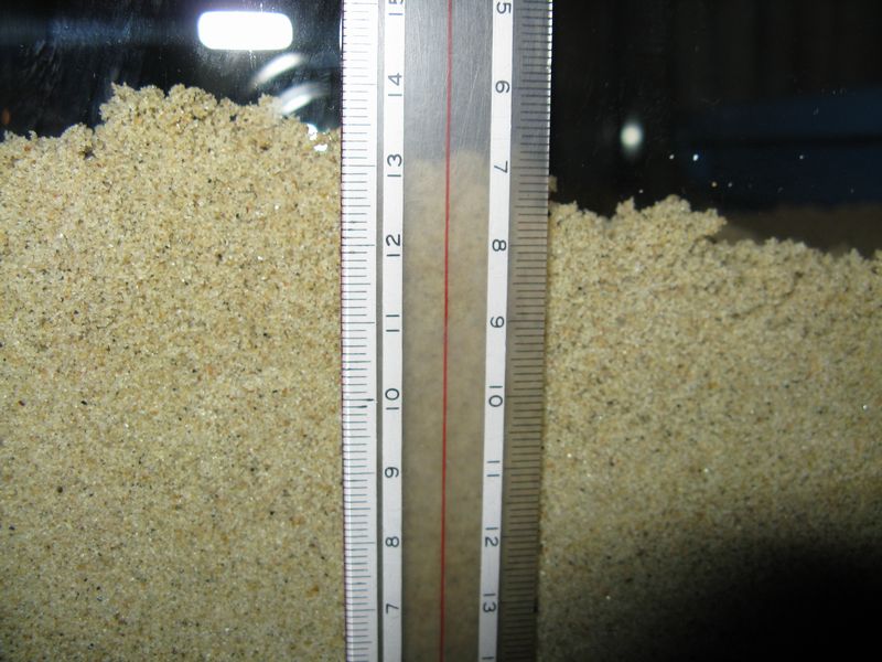 採ってきた砂を全部入れたら12cmくらいの厚さになりました。