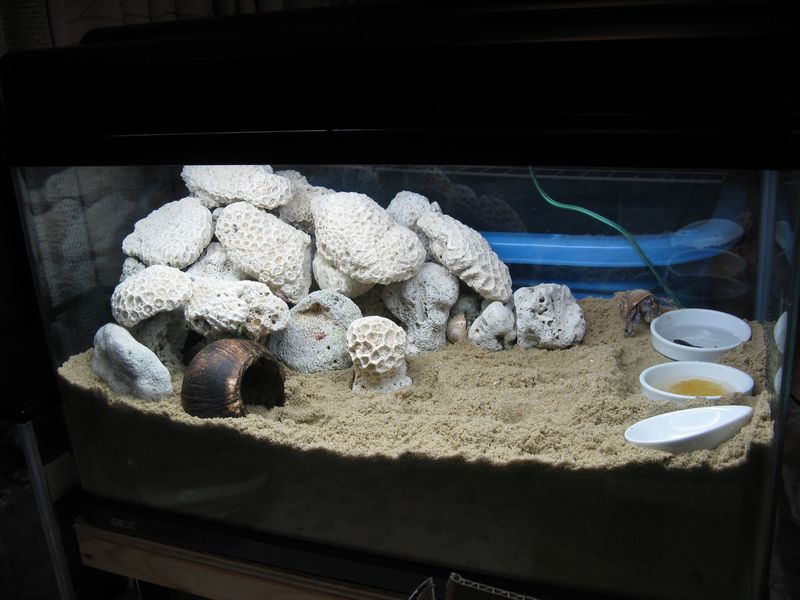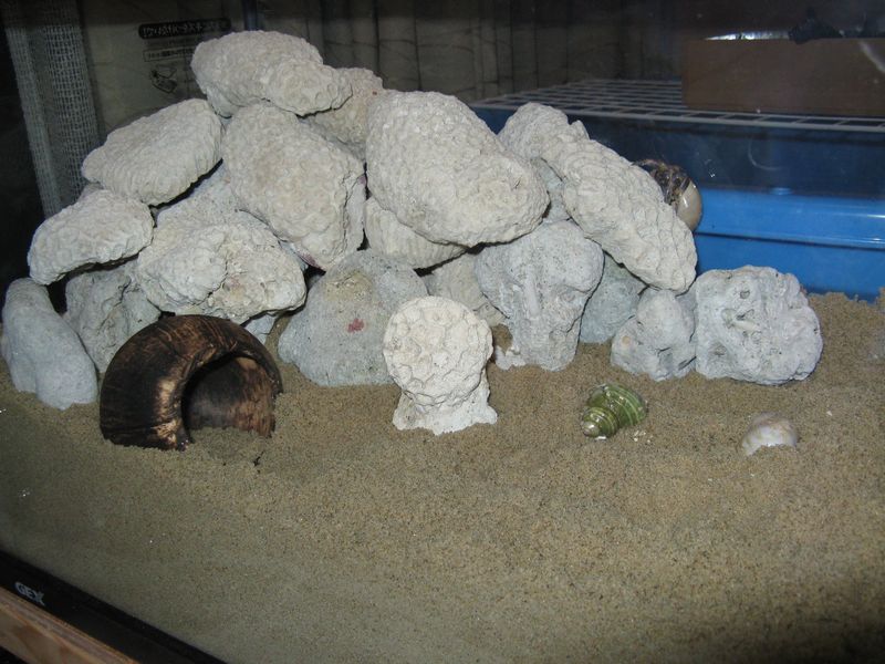 オカヤドカリを移してから自作ココナッツシェルターを入れていなかったことに気づいたので少しレイアウトを変更しました。
