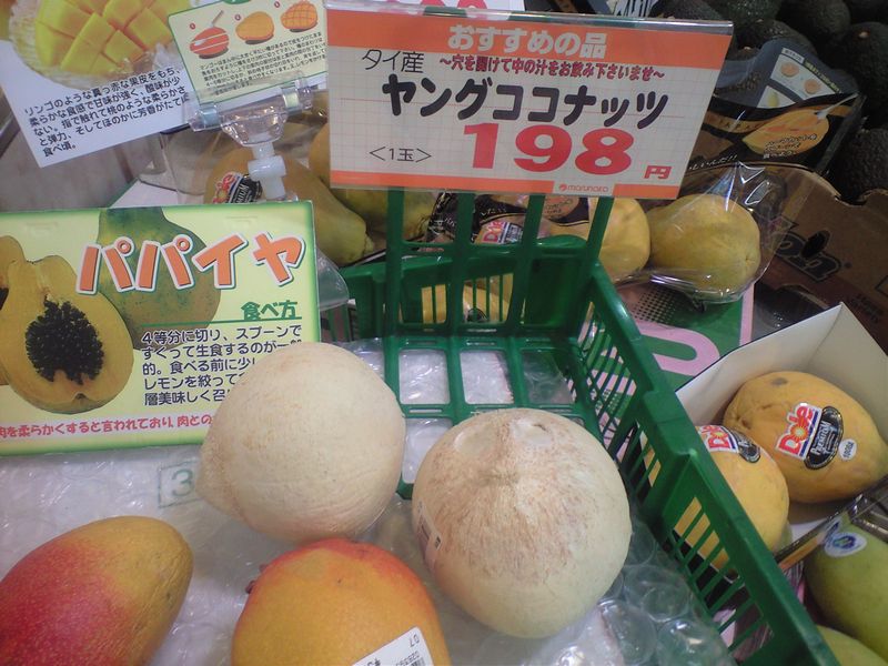 この間、サトウキビを買ったときに椰子の実も見ていたのですが、昔に椰子の実に穴を開けようとして包丁一本ダメにしたことがあるので買うのはやめました。