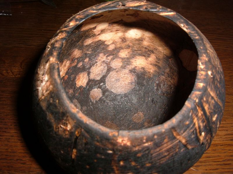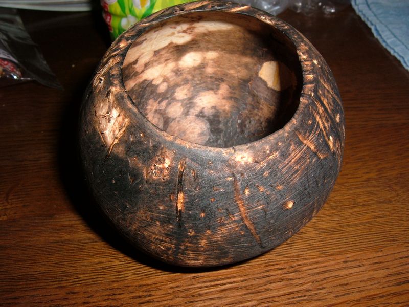 いくら洗っても内側にココナッツの香りが残っていて、このまま使うとカビが生えるかもしれないと思ったのでガスバーナーで焼きました。