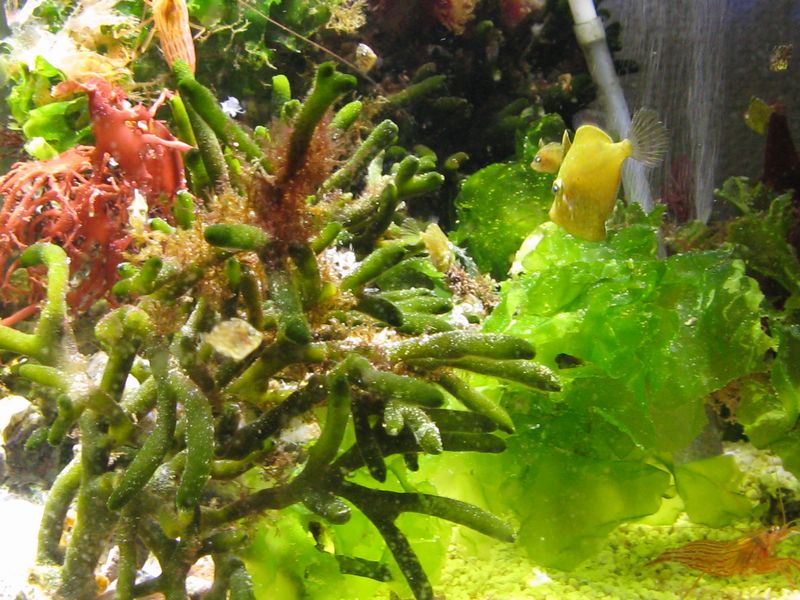 アミメハギは海松についていたワレカラを一気に捕食しはじめ、人工餌には全然見向きもせず、海松についているワレカラを探して泳ぎまわっていました。